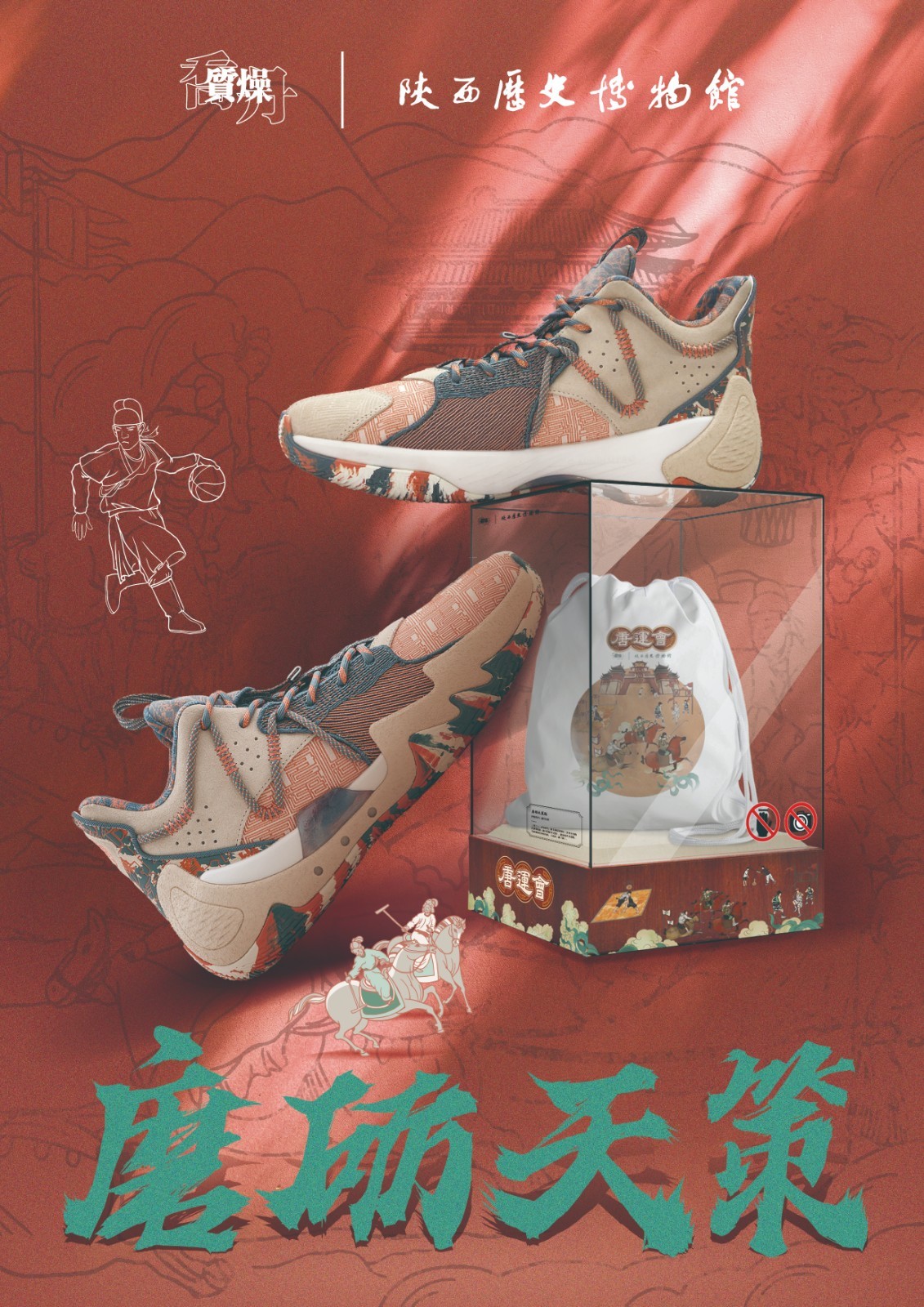 乔丹质燥潮流产品能与西安厚重的历史质感相配而不“怯场”,得益于其背后的历史底蕴:继国漫「大闹天宫」和「哪吒闹海」之后,乔丹质燥再与经典历史IP「陕西历史博物馆」联名合作,双方将进行一场跨越千年的对话,用唐朝文化为现代潮流赋能,用现代潮流语言讲述盛唐文化故事,“磨砺天策”篮球鞋则是双方本次合作推出的首发联名系列产品之一。