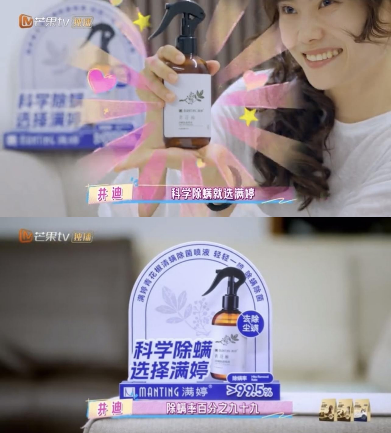 节目中,满婷产品成为自然融入嘉宾日常场景的“生活必需品”,以专业健康守护贯穿整季内容:家居清洁时的全方位除螨防护、后背痘痘困扰的精准肌肤护理、宠物互动后的螨虫隐患清零,每一处场景都精准击中当代家居生活的痛点,而产品以综艺节目中的真实使用场景为载体,将产品除螨功效具象化、可视化,让“除螨护健康”的理念深入人心。