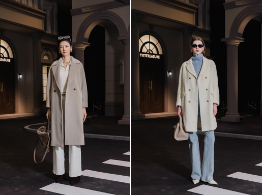 YIYITREASURE此次大秀以“奢雅绒静”为灵魂主线,摒弃传统时装秀的浮夸表达,转而通过材质质感与场景氛围的细腻融合,传递 “绒” 的温暖与 “静” 的雅致。从自然雪景的静谧浪漫,到都市街景的摩登从容,再到晚宴场合的奢雅沉稳,每一篇章都围绕 “绒静” 主题展开,让观众在视觉沉浸中感受冬季时尚的独特魅力。